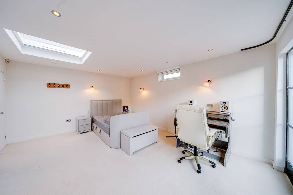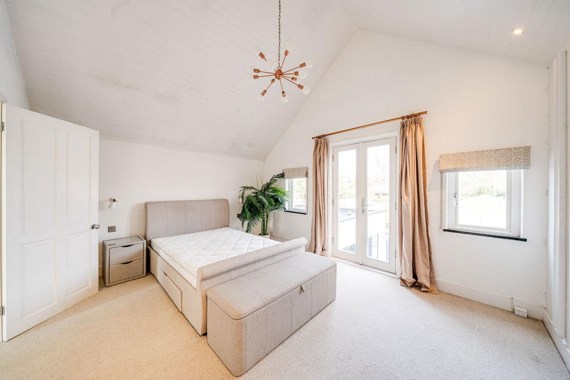 Also accessed from the courtyard is a self contained studio. This versatile space features Crittall style doors, reclaimed parquet flooring, its own shower room, utility area and underfloor heating. With independent access, it is ideally suited as a home office, guest accommodation or creative workspace.