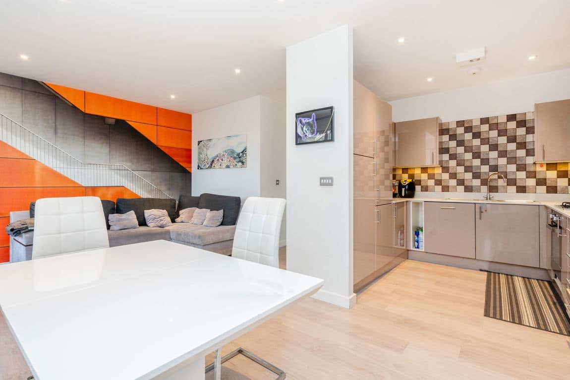 The flat boasts an open-plan living area with wooden floors throughout, adding a contemporary and sleek touch to the property. The master bedroom features an en-suite bathroom, ensuring added privacy and convenience. Additionally, the flat comes with a private parking space, a valuable asset in this desirable location.
