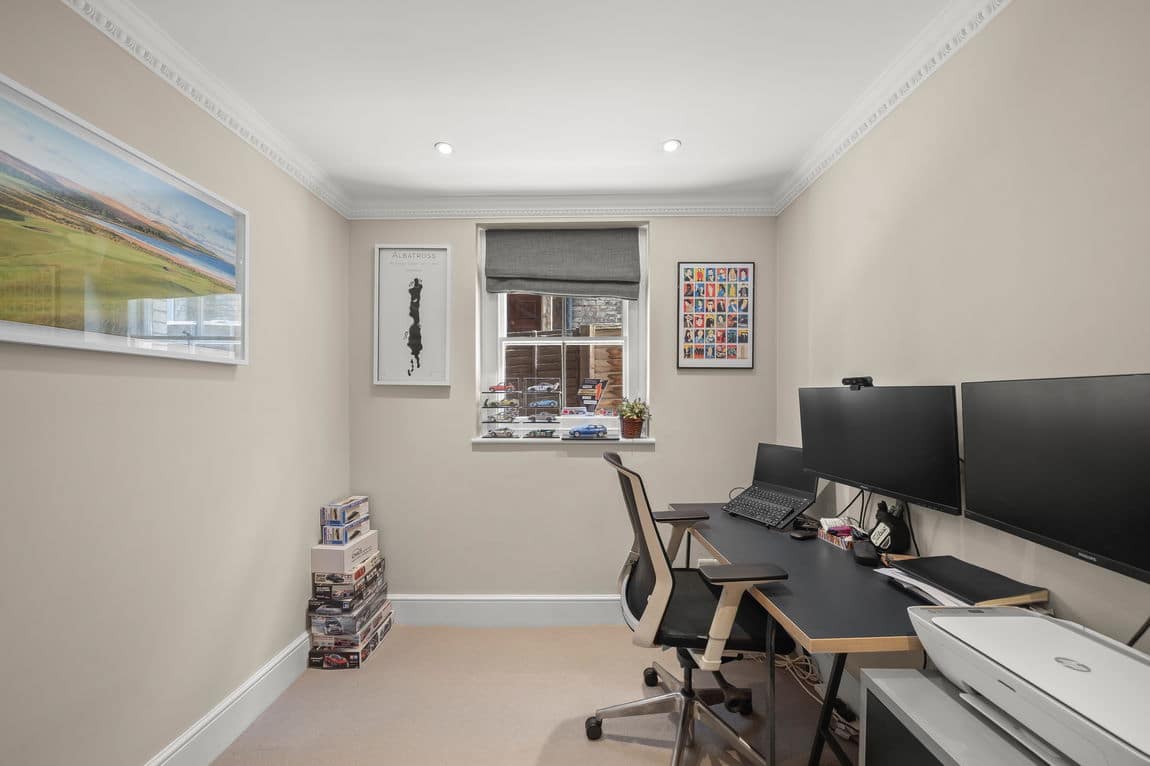 The bay-fronted main bedroom includes fitted wardrobes and a smart en suite, while two further bedrooms offer flexibility for family, guests or working from home. Additional benefits include two separate loft storage areas, ensuring the property is as functional as it is attractive.