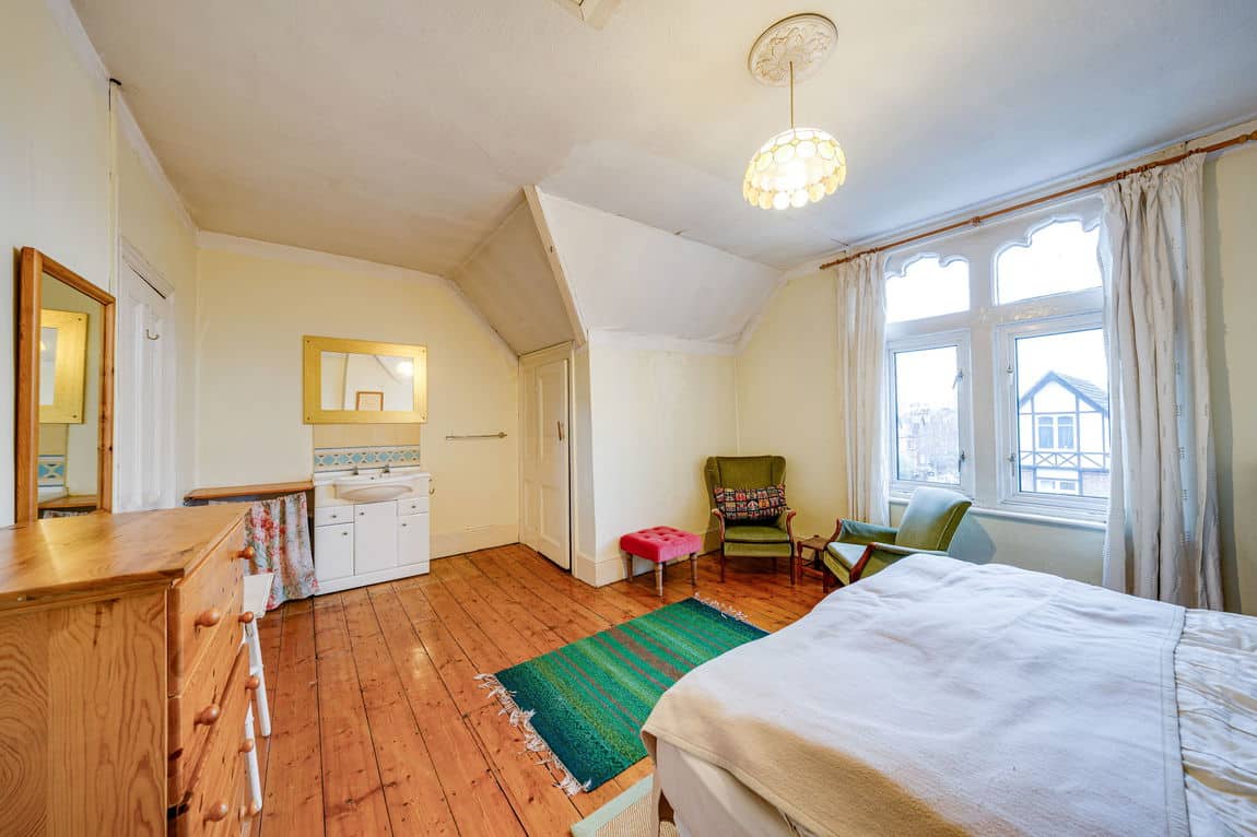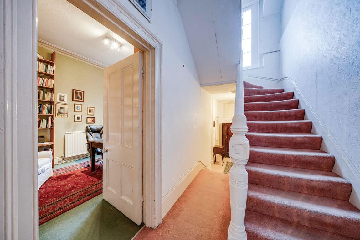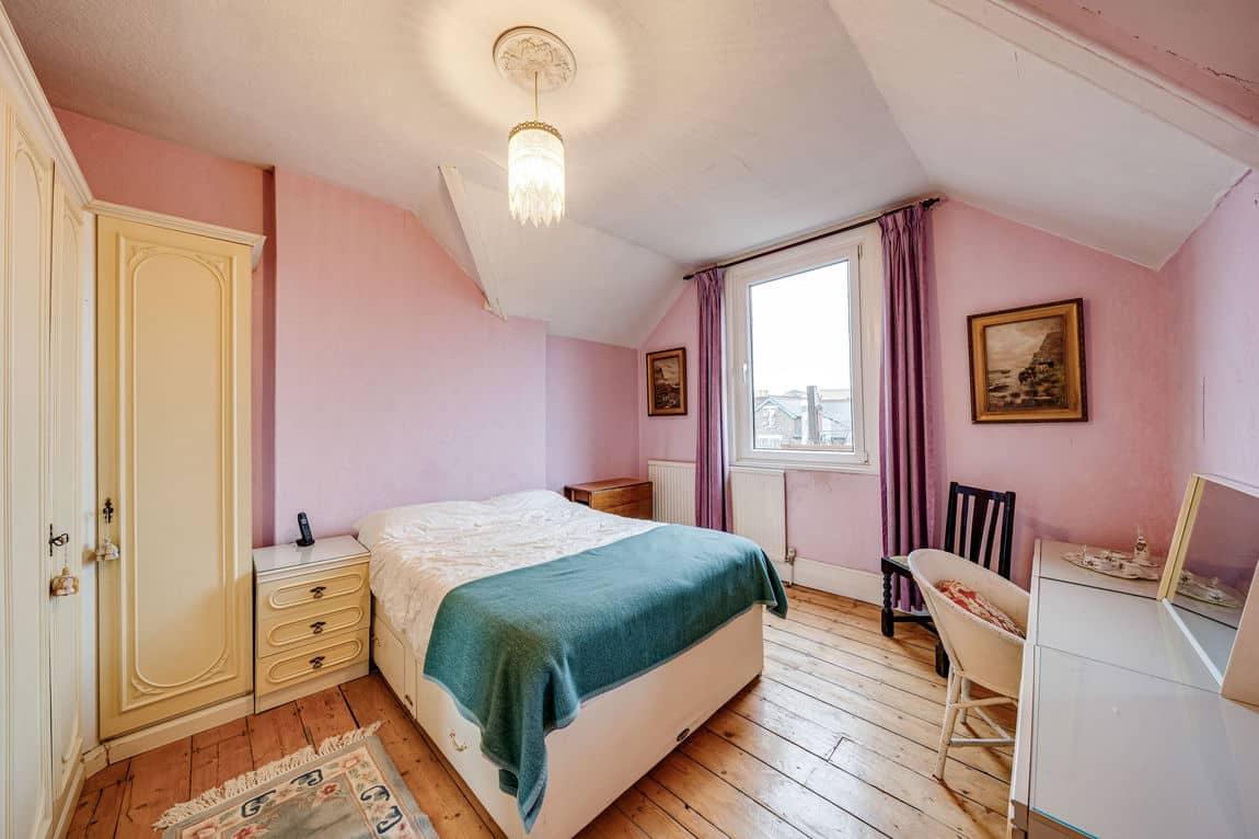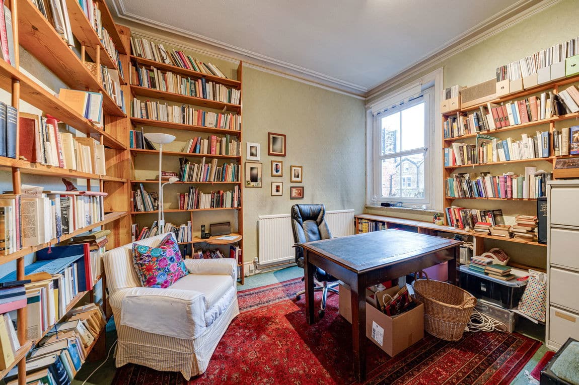 A substantial three bedroom duplex apartment arranged over the first and top floors, extending to approximately 1,302 sq ft and benefiting from a share of the freehold. Positioned on a quiet residential road just a five minute walk from Willesden Green station, the property offers exceptional volume, light and outdoor space in a prime Zone 2 setting.