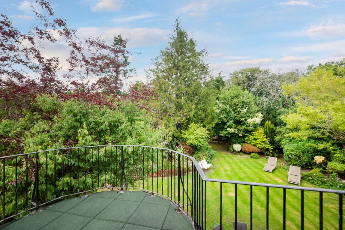 The principal bedroom benefits from a private balcony overlooking the garden, creating a calm and private retreat. The home also offers multiple bath and shower rooms, ensuring comfort and ease for both family members and guests.