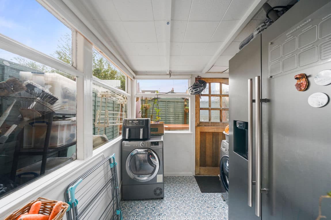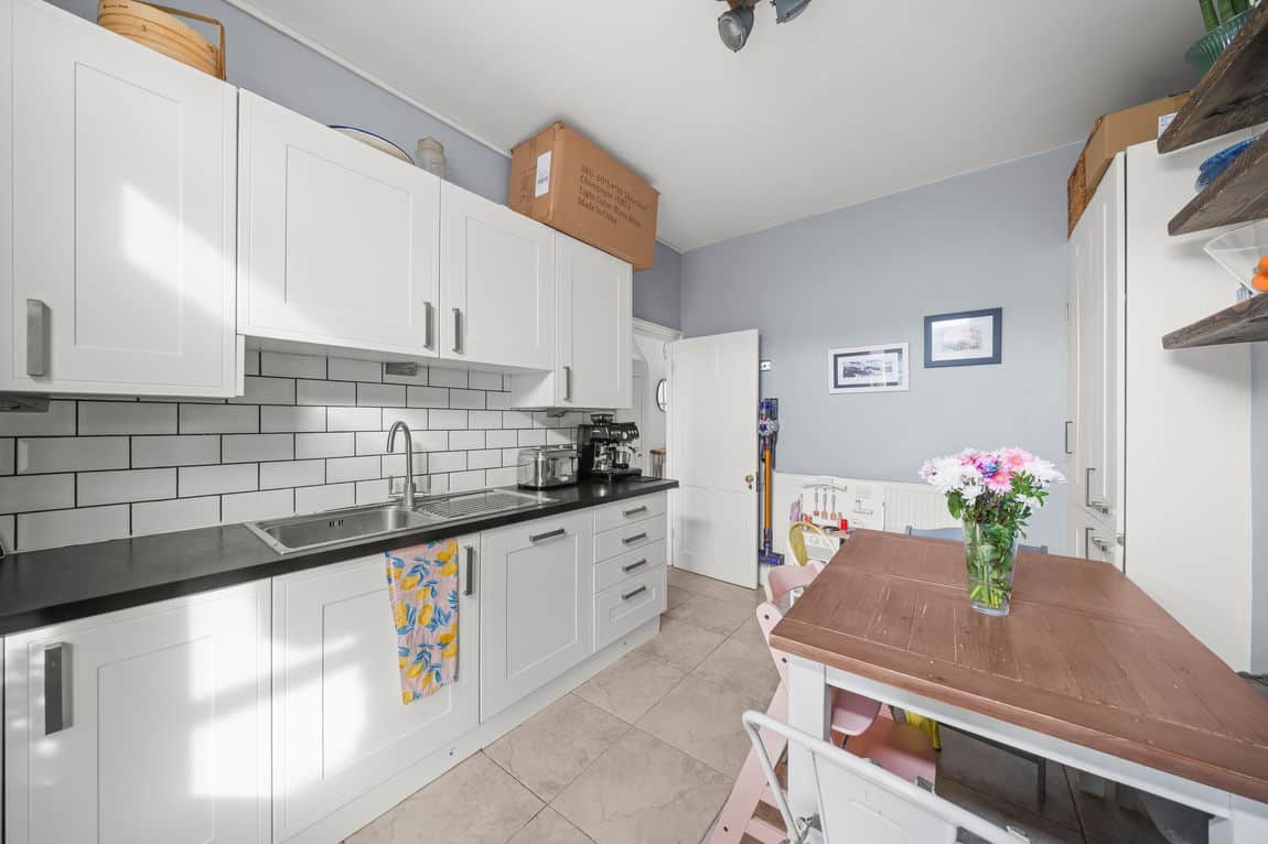 The accommodation is bright and practical, comprising two good sized double bedrooms, making it ideal for a small family or those looking for comfortable and spacious accommodation. The kitchen dining room is particularly generous, providing ample space for everyday family life as well as entertaining. To the rear, a conservatory extension creates an additional reception area with direct access to the garden, allowing plenty of natural light and a pleasant outlook.