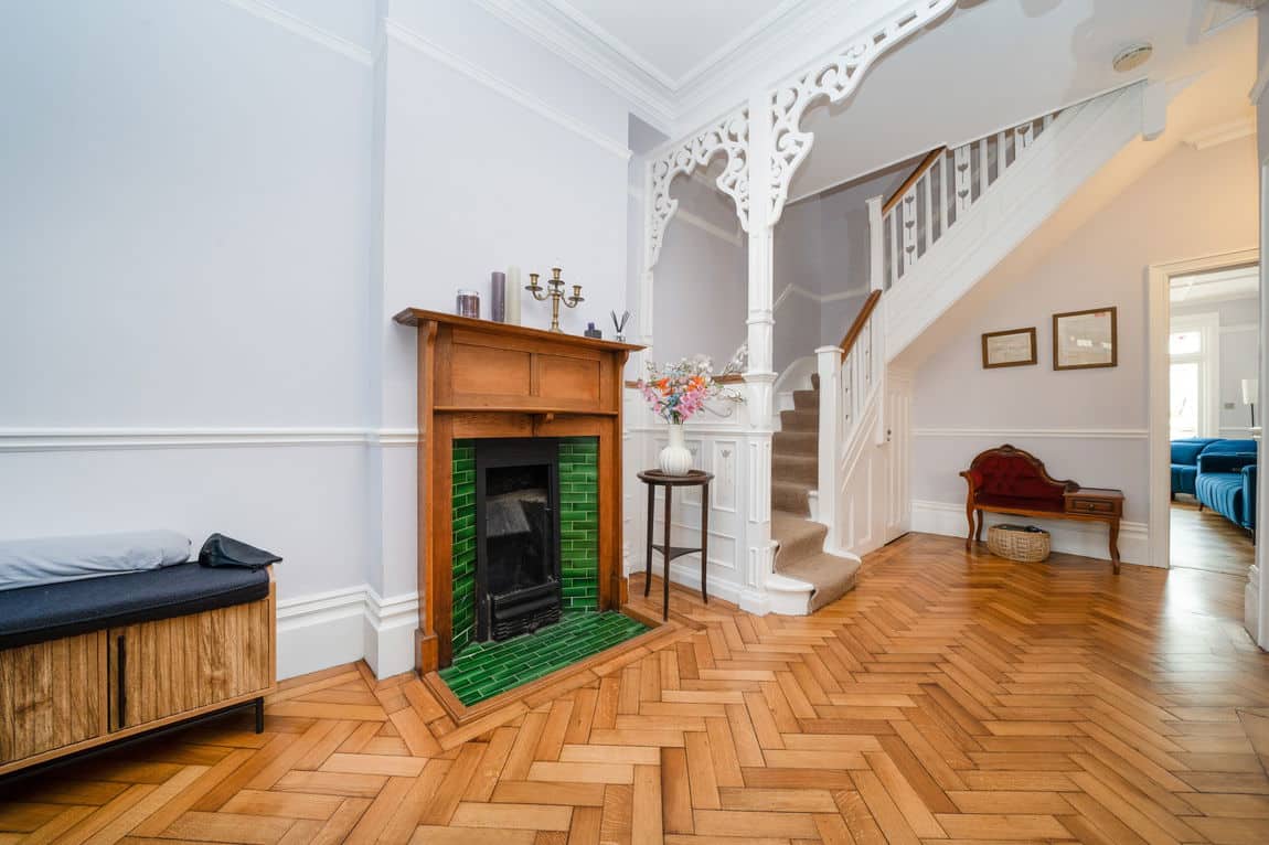• Period Features – Seven original fireplaces, intricate mouldings, and high ceilings.